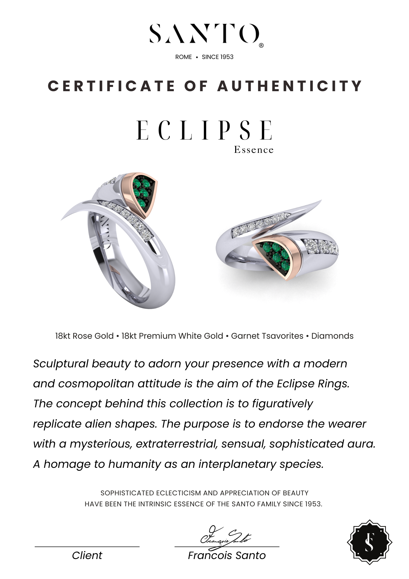 Eclipse Essence Ring with Diamonds and Garnet Tsavorites