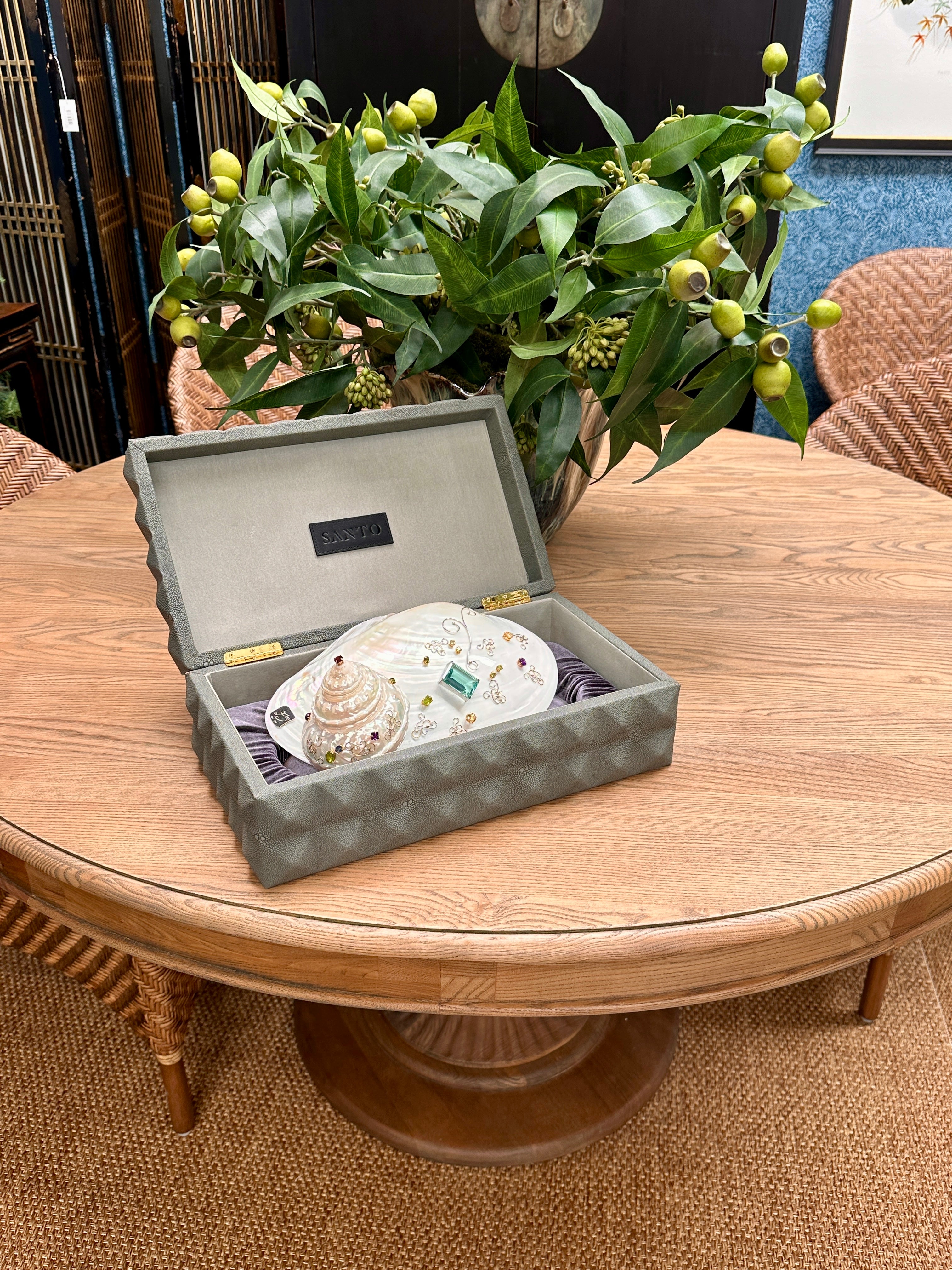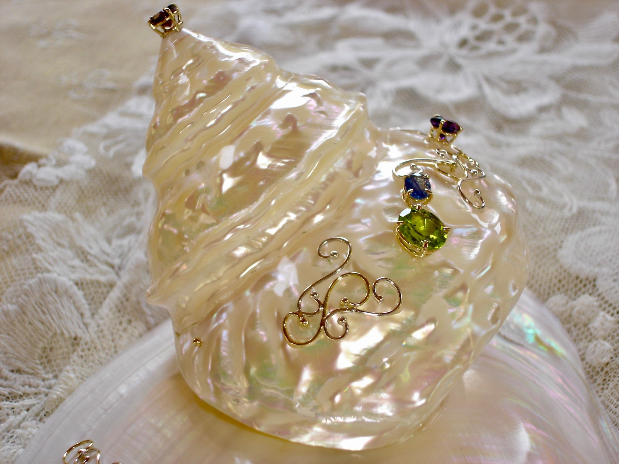 A harmonious blend of Natural Mediterranean shells, 18k Yellow Gold, and Sterling Silver embody the raw beauty of the ocean, adorned with a colour burst of natural gemstones representing the treasures buried under the sea.