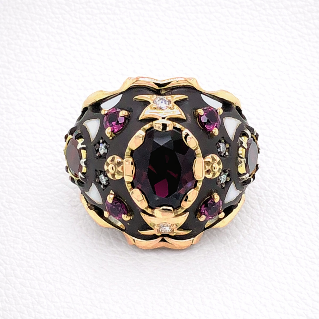 Brunelleschi Ring with Garnet, Rhodolite Garnet and Diamond