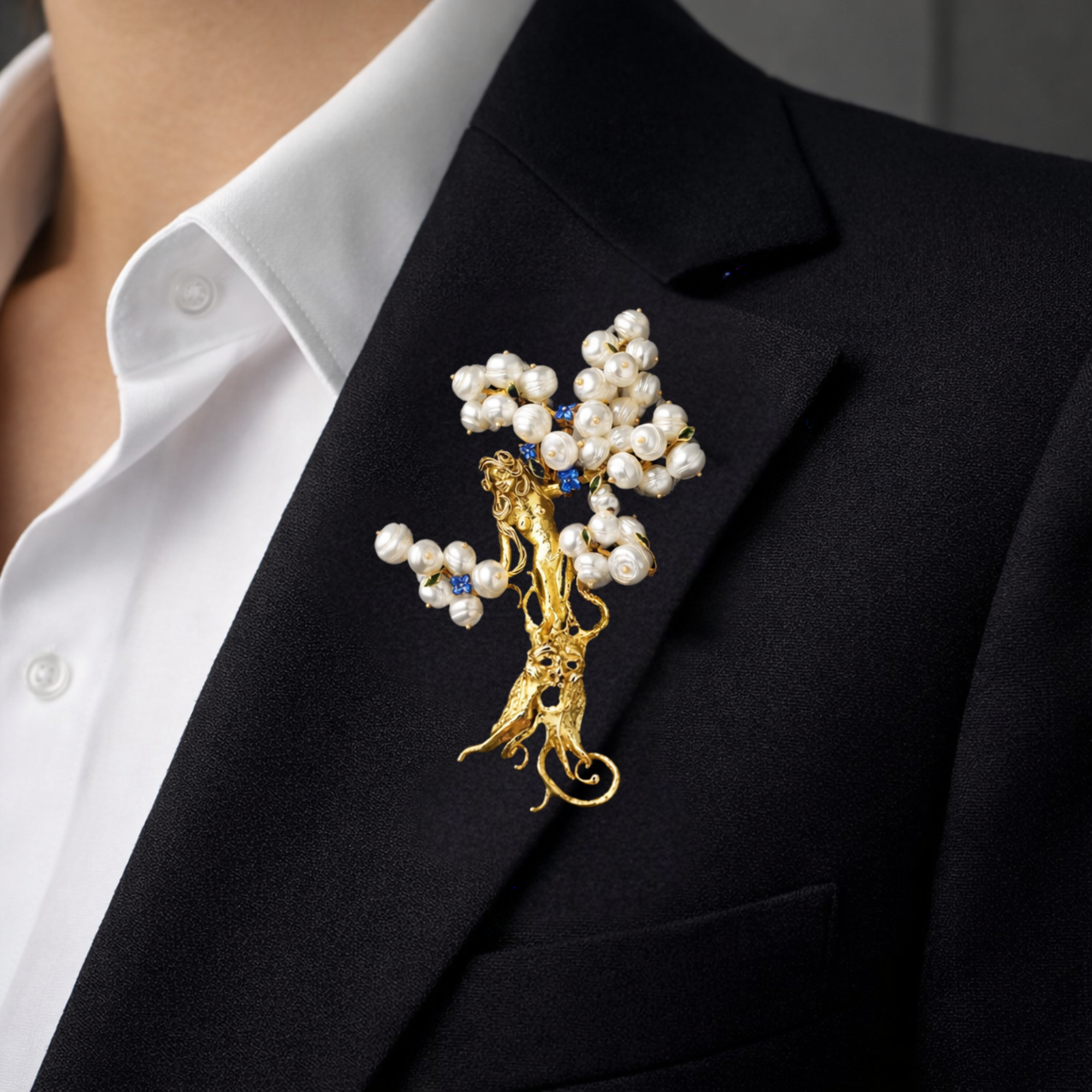 18kt Royal Yellow Gold, Fresh Water Pearls, Fire Enamel