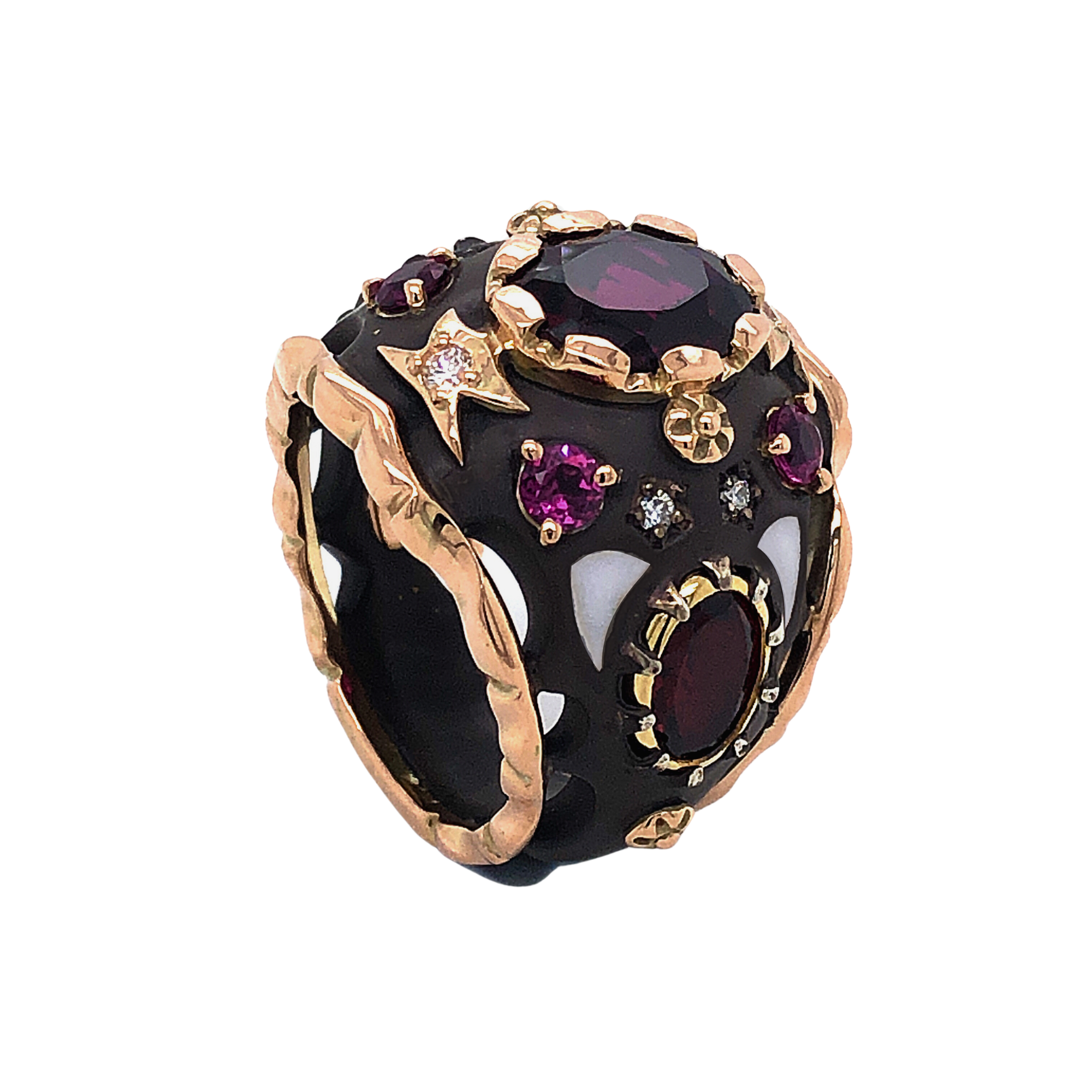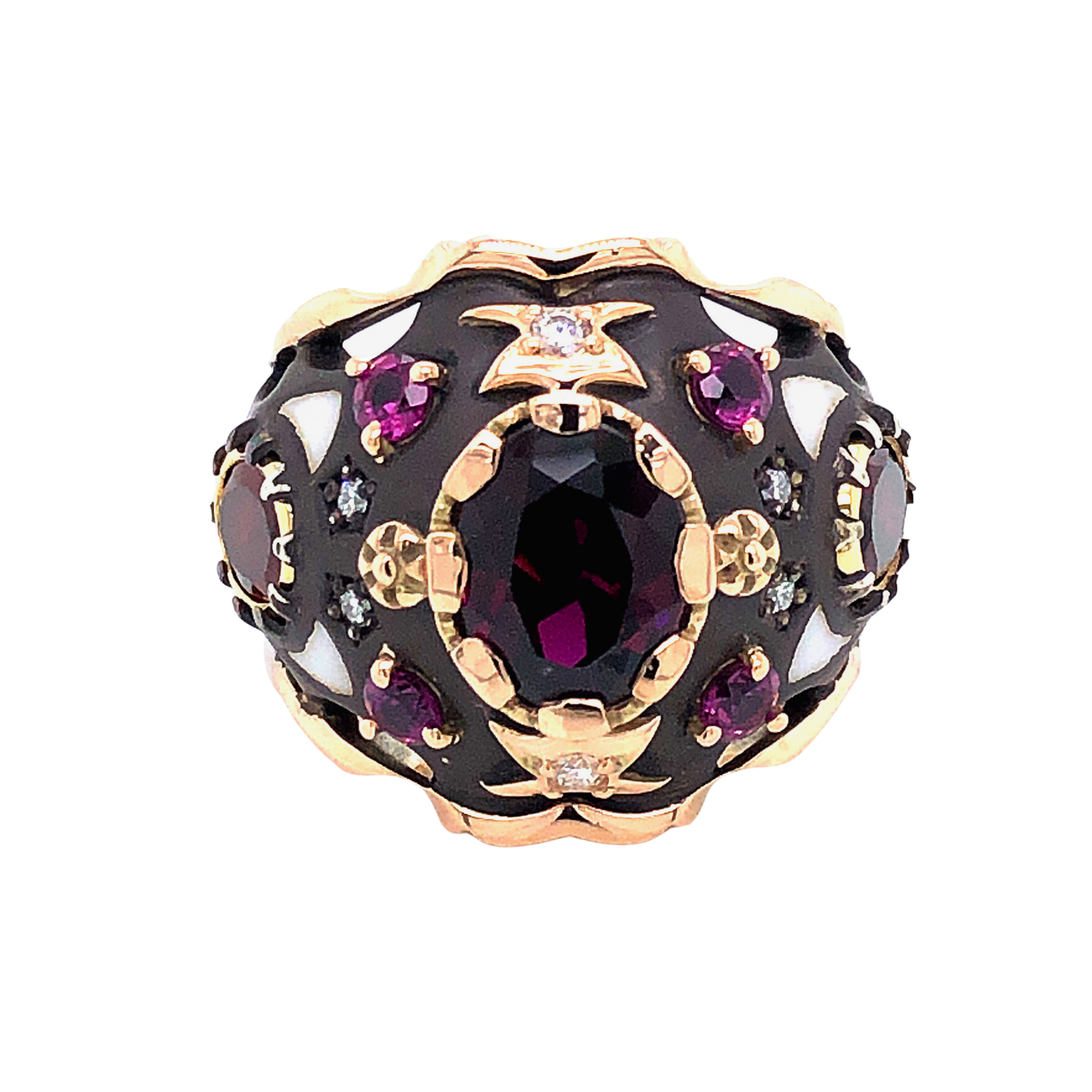 Brunelleschi Ring with Garnet, Rhodolite Garnet and Diamond