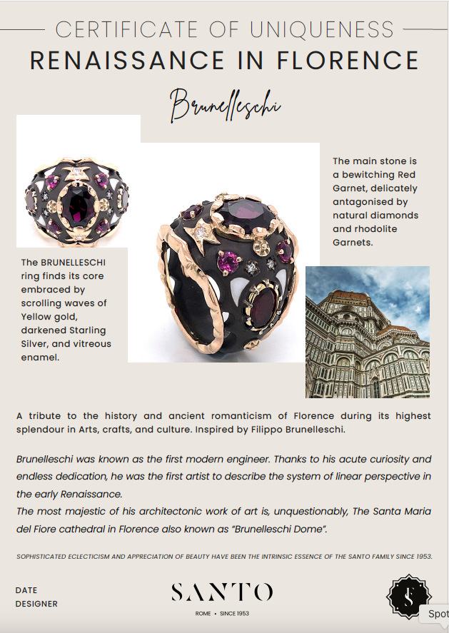 A tribute to the history and ancient romanticism of Florence during its highest splendour in Arts, crafts, and culture. Inspired by Filippo Brunelleschi.