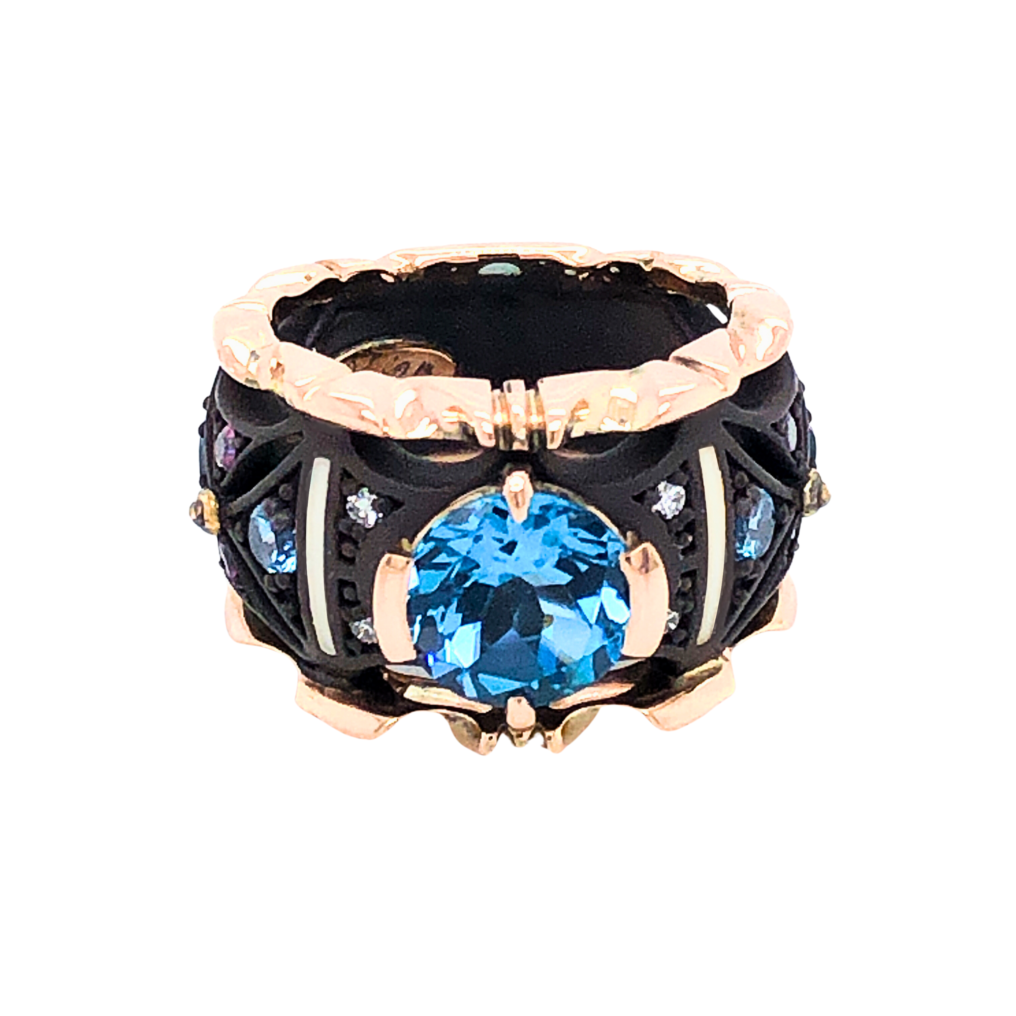 Donatello Ring with Blue Topaz, Rhodolite Garnet and Diamond
