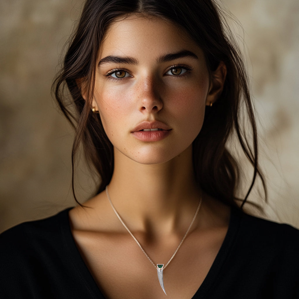Eclipse Necklace with Full Pavé White Diamonds and Garnet Tsavorites
