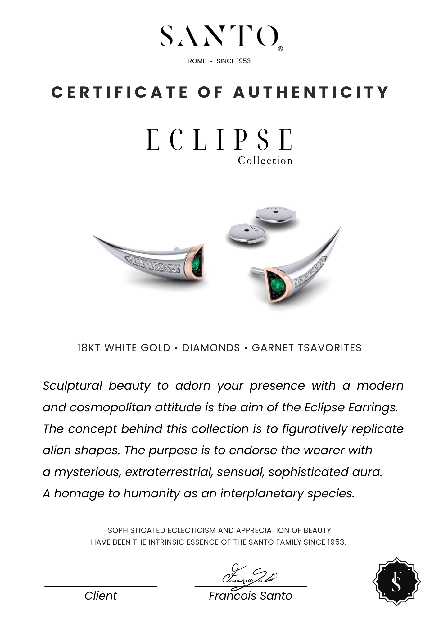 The concept behind this collection is to figuratively replicate alien shapes. The purpose is to endorse the wearer with a mysterious, extraterrestrial, sensual, sophisticated aura.