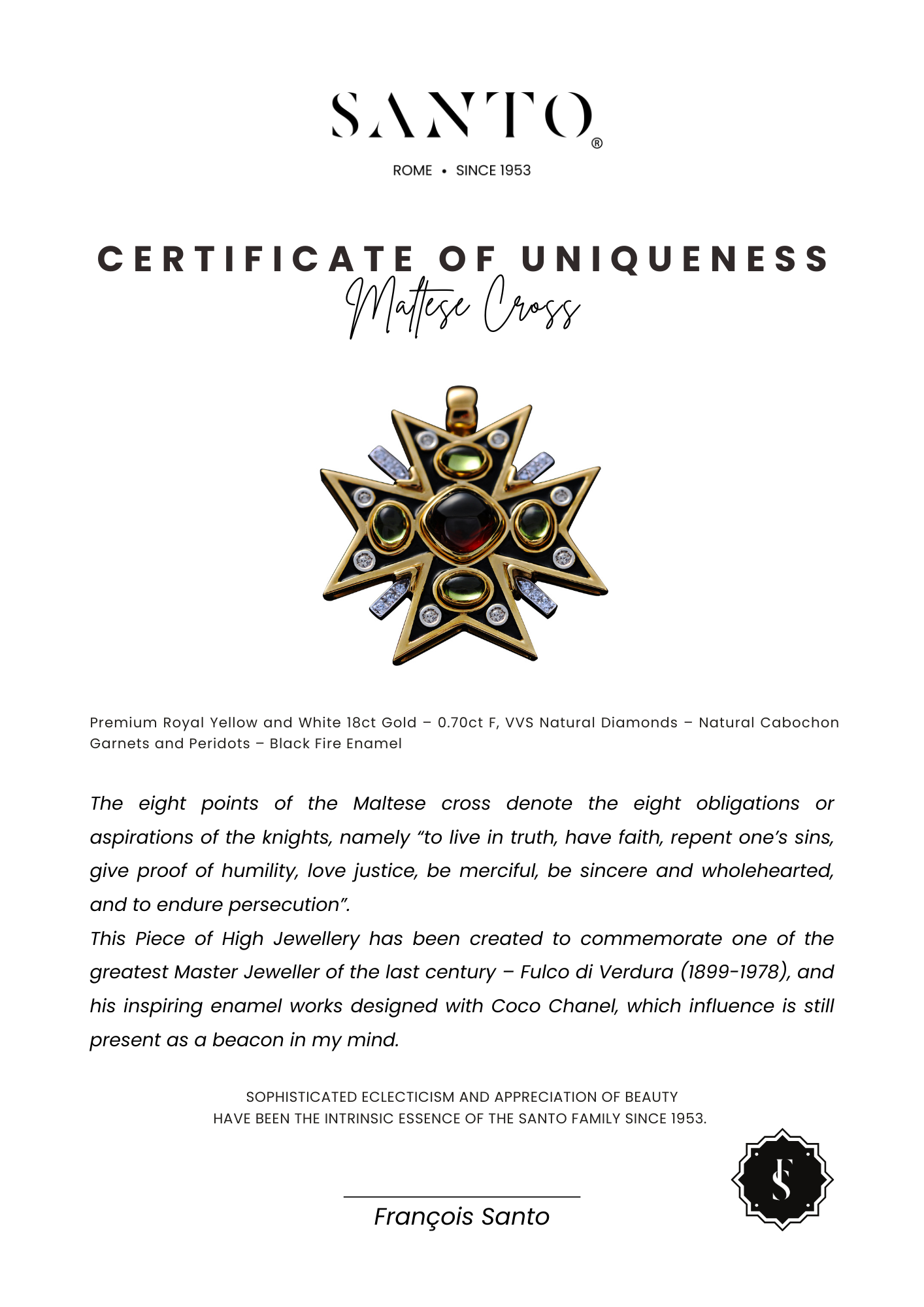 This Piece of High Jewellery has been created to commemorate one of the greatest Master Jeweller of last century – Fulco di Verdura (1899-1978), and his inspiring enamel works designed with Coco Chanel, which influence is still present as a beacon in my mind.