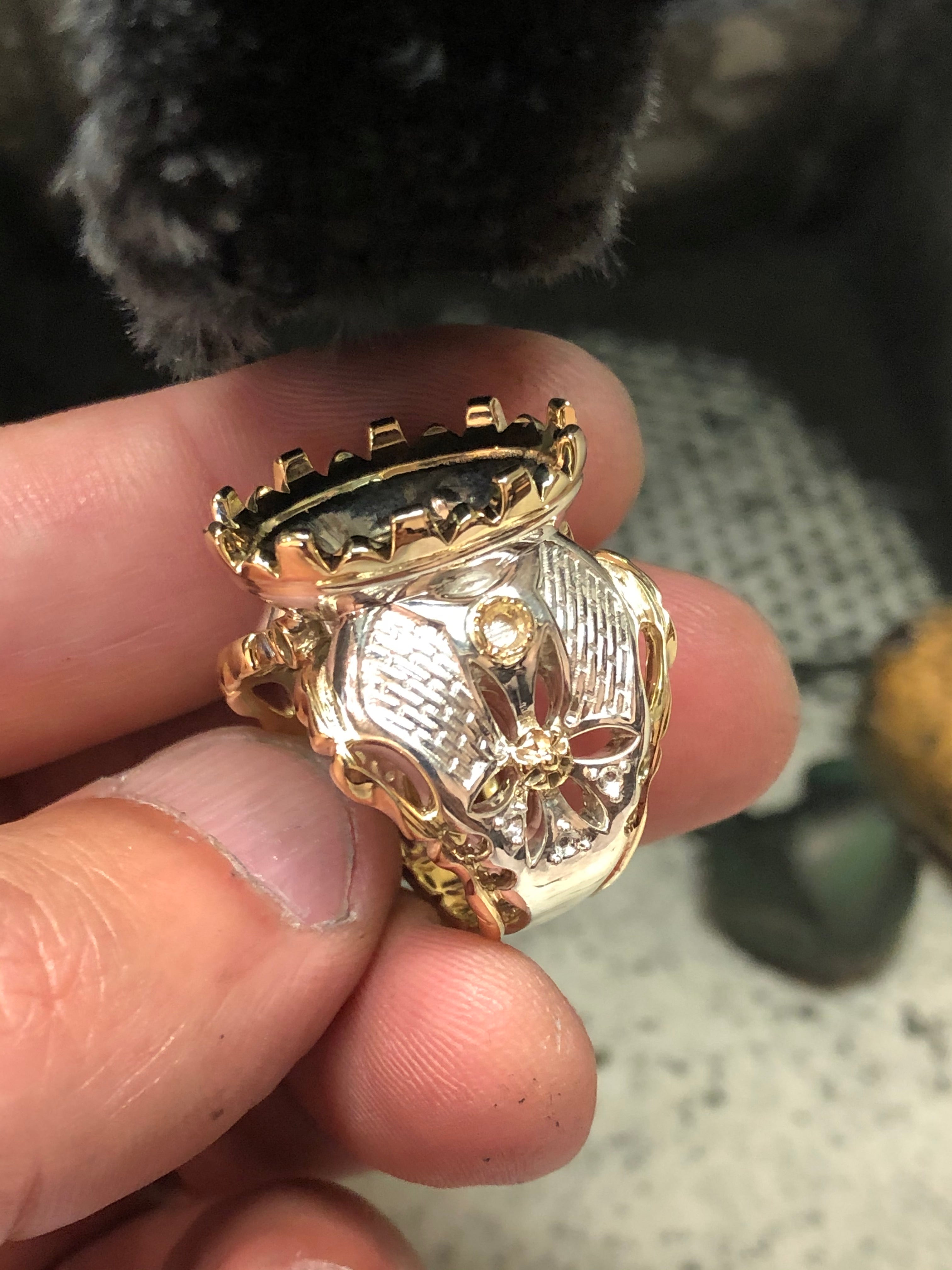 Michelangelo Ring with Lemon Topaz, Diamonds, Rhodolite Garnets and Colombian Emeralds
