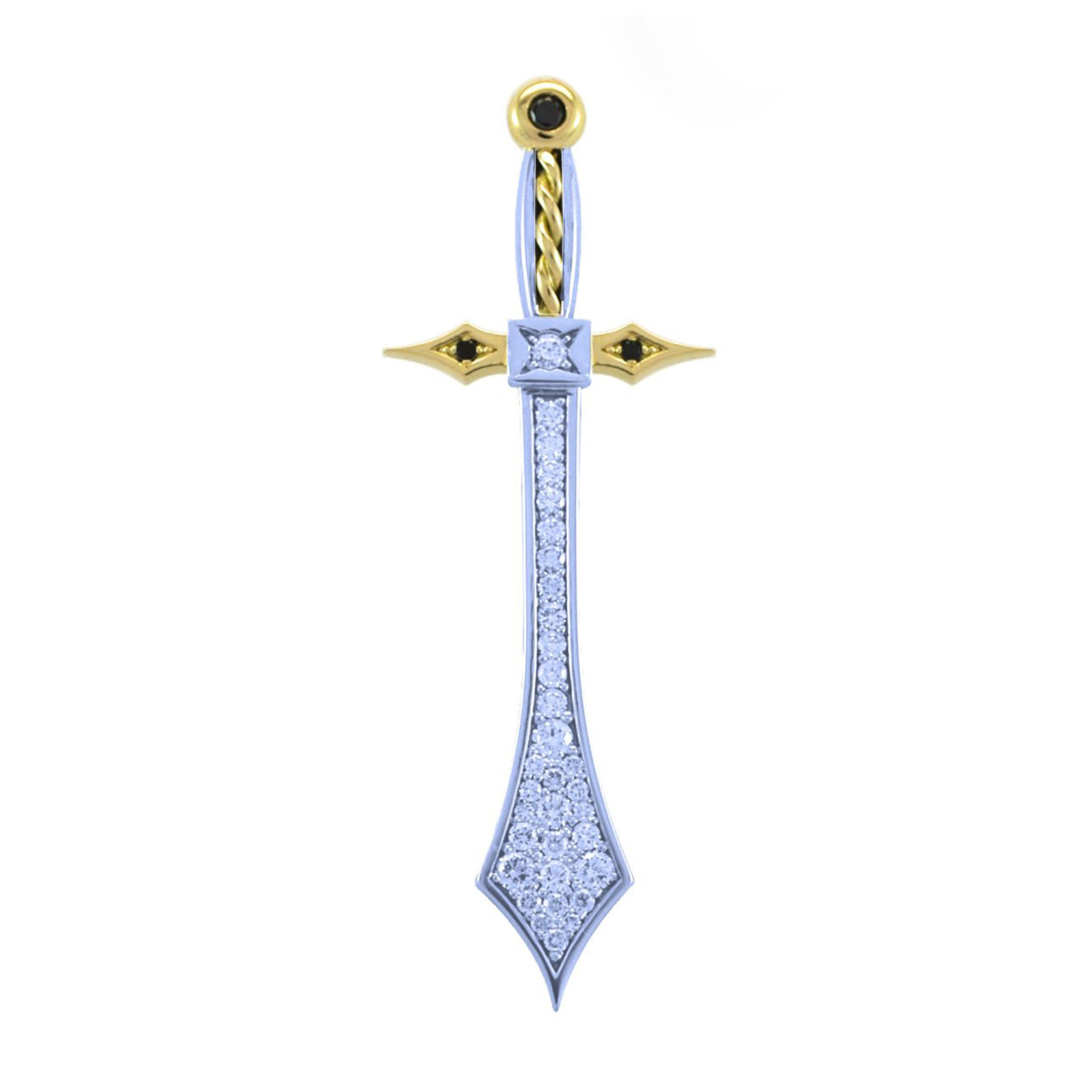 SAINT Sword Pendant with White Diamonds Full Pavee' and Black Diamonds